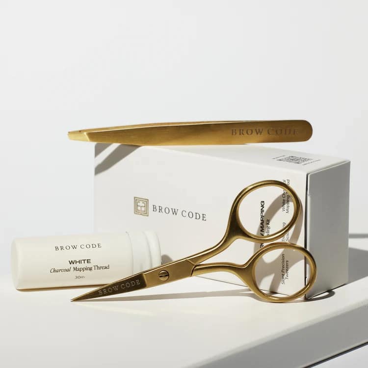 Touch up your brows in-between appointments or perfect your brow styling with our Brow Mapping Kit, featuring Brow Code’s White Charcoal Mapping Thread, Slant Tweezers, and Trimming Scissors. This all-in-one set ensures perfect symmetry with high-pigment mapping thread, precision tweezers for shaping, and sharp trimming scissors for ultimate brow refinement.