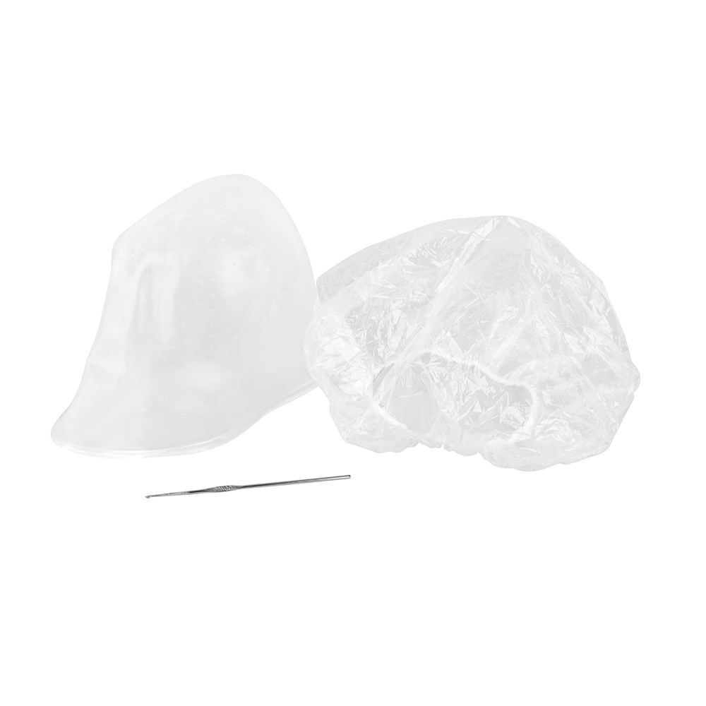 This reusable cap is ideal for salon or home use when highlighting or low lightening hair. Includes a steel hook to pull hair through easily.