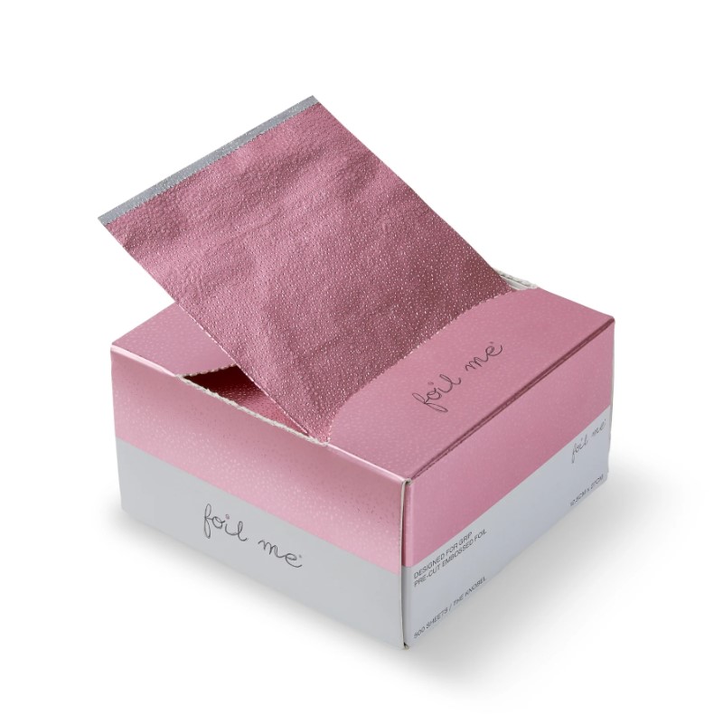 Embossed, pink pre-cut foil