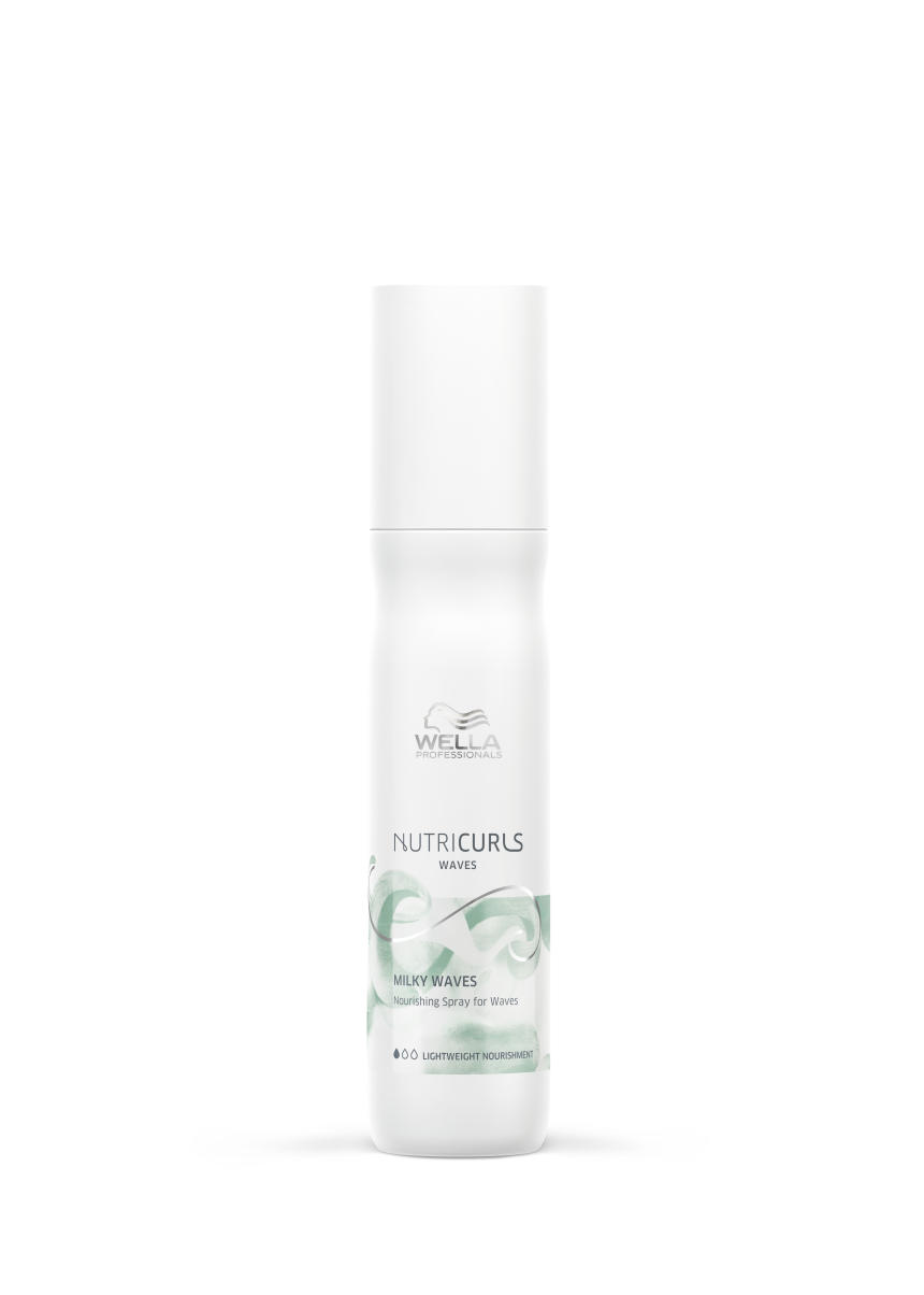 Lightweight milky leave-in spray that nourishes and adds manageability for soft waves.