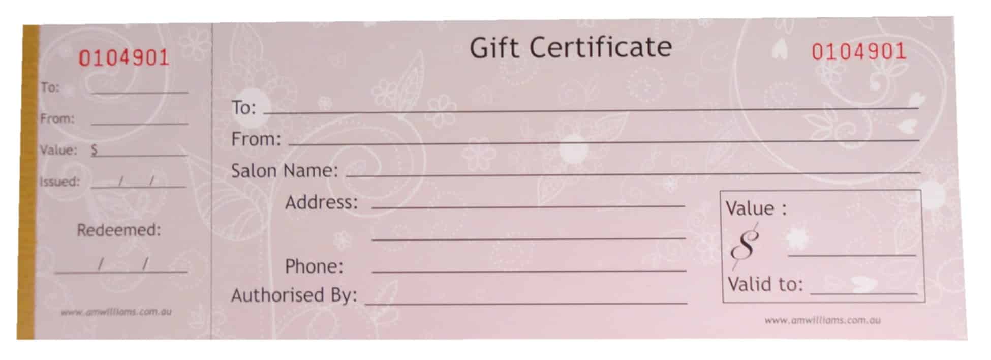 Salon Gift Certificates – 50 Certificate Blanks with duplicate copy for salon record and counter card